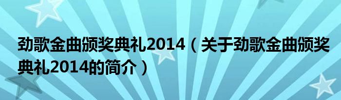 本文關于勁歌金曲頒獎典禮2014的簡介就講解完畢,希望對大家有所幫助。