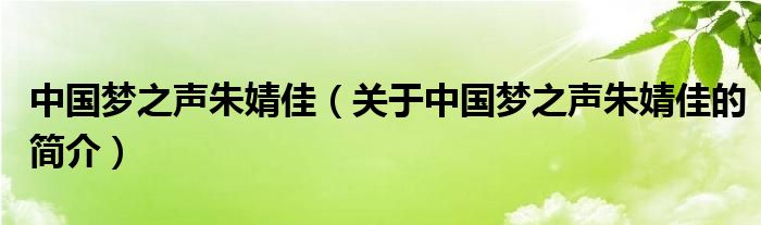 本文關于中國夢之聲朱婧佳的簡介就講解完畢,希望對大家有所幫助。
