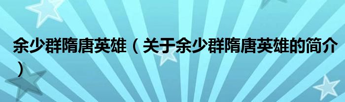 本文關于余少群隋唐英雄的簡介就講解完畢,希望對大家有所幫助。