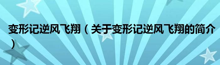 大家好,變形記逆風飛翔,關于變形記逆風飛翔的簡介很多人還不知道,現在讓我們一起來看看吧!