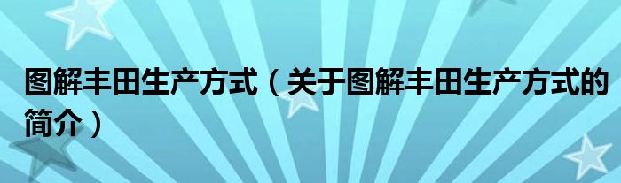 大家好,圖解豐田生產(chǎn)方式,關(guān)于圖解豐田生產(chǎn)方式的簡介很多人還不知道,現(xiàn)在讓我們一起來看看吧!