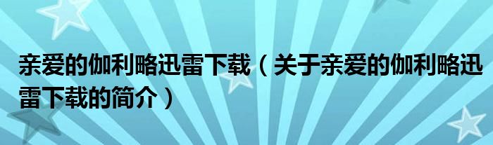 本文關(guān)于親愛的伽利略迅雷下載的簡介就講解完畢,希望對大家有所幫助。