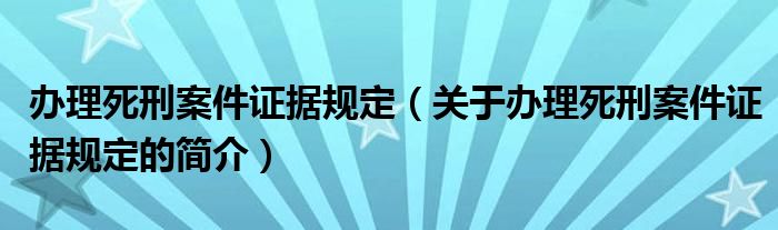 本文關于辦理死刑案件證據規定的簡介就講解完畢,希望對大家有所幫助。