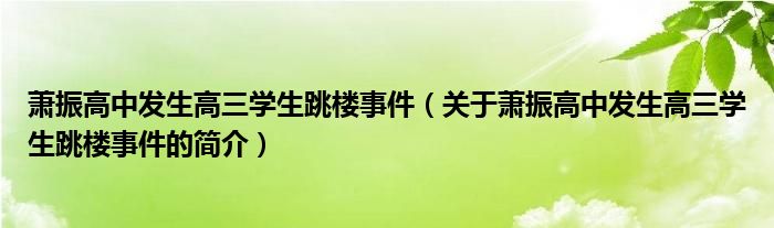 本文關于蕭振高中發生高三學生跳樓事件的簡介就講解完畢,希望對大家有所幫助。