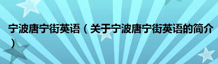 本文關于寧波唐寧街英語的簡介就講解完畢,希望對大家有所幫助。