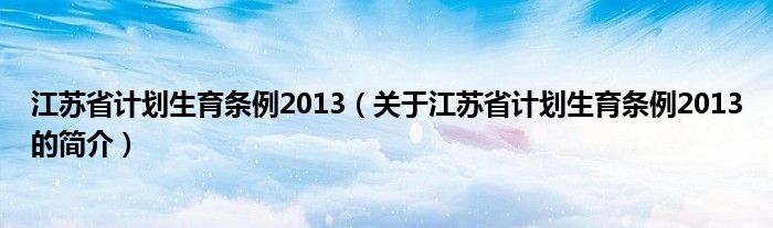 本文關于江蘇省計劃生育條例2013的簡介就講解完畢,希望對大家有所幫助。