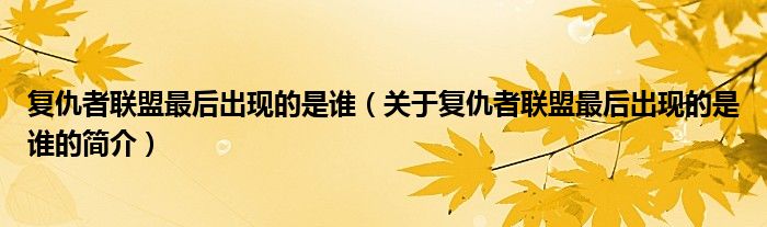 本文關于復仇者聯(lián)盟最后出現的是誰的簡介就講解完畢,希望對大家有所幫助。