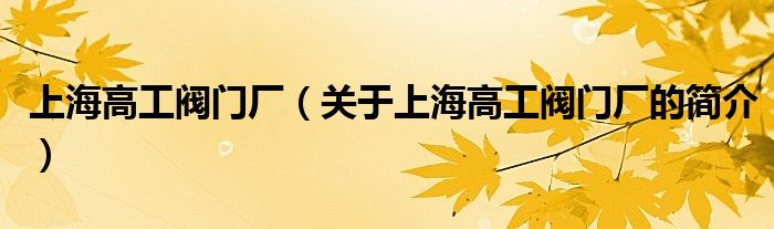 本文關(guān)于上海高工閥門廠的簡介就講解完畢,希望對大家有所幫助。