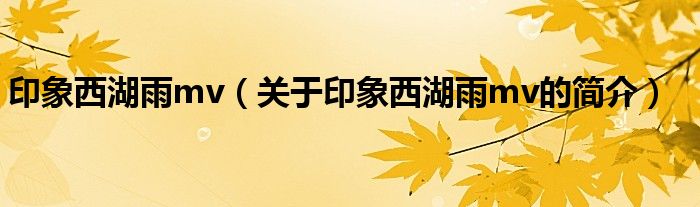 本文關于印象西湖雨mv的簡介就講解完畢,希望對大家有所幫助。