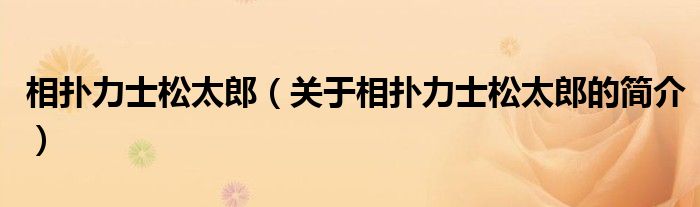 大家好,相撲力士松太郎,關于相撲力士松太郎的簡介很多人還不知道,現在讓我們一起來看看吧!