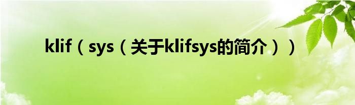 本文關(guān)于klif sys的簡(jiǎn)介就講解完畢,希望對(duì)大家有所幫助。