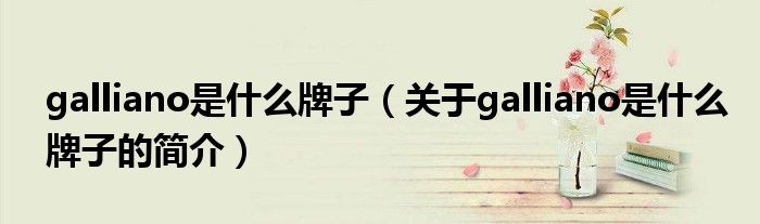 本文關(guān)于galliano是什么牌子的簡介就講解完畢,希望對大家有所幫助。