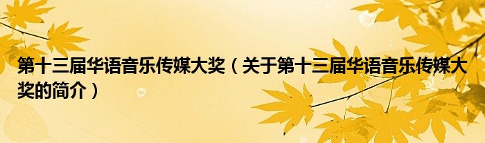 本文關于第十三屆華語音樂傳媒大獎的簡介就講解完畢,希望對大家有所幫助。