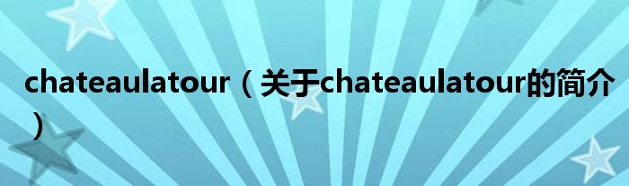 大家好,chateaulatour,關于chateaulatour的簡介很多人還不知道,現在讓我們一起來看看吧!