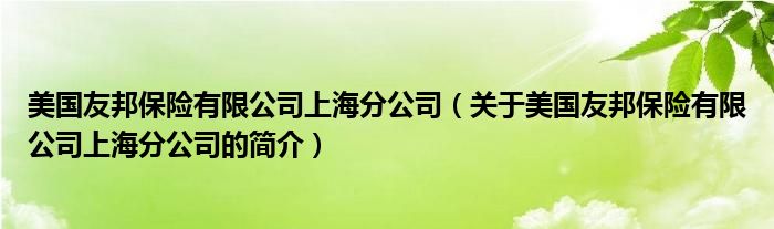 本文關(guān)于美國(guó)友邦保險(xiǎn)有限公司上海分公司的簡(jiǎn)介就講解完畢,希望對(duì)大家有所幫助。
