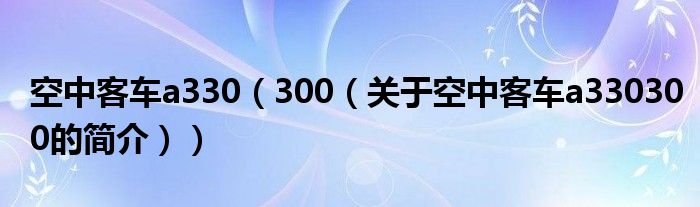 本文關于空中客車a330 300的簡介就講解完畢,希望對大家有所幫助。