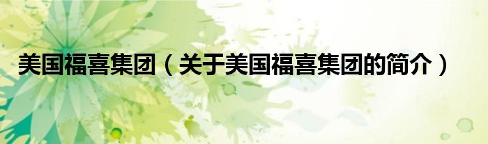 大家好,美國福喜集團,關于美國福喜集團的簡介很多人還不知道,現在讓我們一起來看看吧!