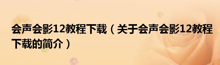 本文關于會聲會影12教程下載的簡介就講解完畢,希望對大家有所幫助。