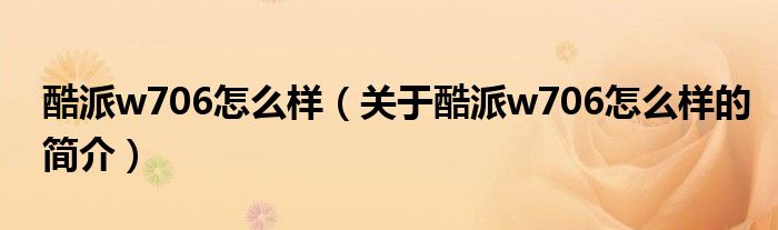 本文關(guān)于酷派w706怎么樣的簡(jiǎn)介就講解完畢,希望對(duì)大家有所幫助。