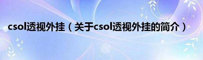 本文關于csol透視外掛的簡介就講解完畢,希望對大家有所幫助。
