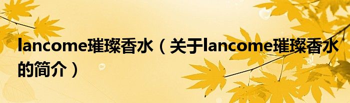 大家好,lancome璀璨香水,關于lancome璀璨香水的簡介很多人還不知道,現在讓我們一起來看看吧!