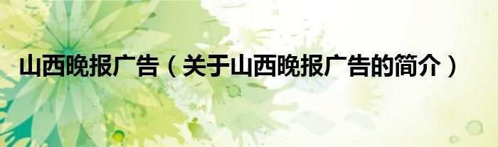 大家好,山西晚報廣告,關于山西晚報廣告的簡介很多人還不知道,現在讓我們一起來看看吧!