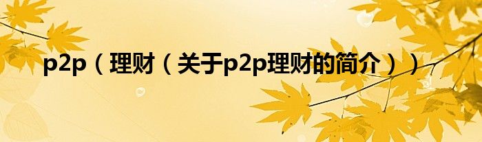 本文關于p2p 理財的簡介就講解完畢,希望對大家有所幫助。