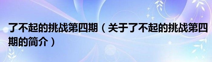 大家好,了不起的挑戰第四期,關于了不起的挑戰第四期的簡介很多人還不知道,現在讓我們一起來看看吧!