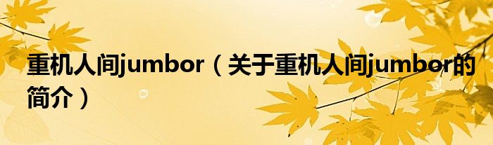 本文關于重機人間jumbor的簡介就講解完畢,希望對大家有所幫助。