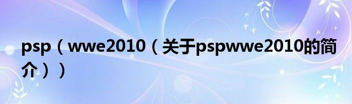 本文關(guān)于psp wwe2010的簡(jiǎn)介就講解完畢,希望對(duì)大家有所幫助。