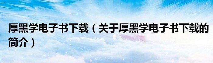 本文關于厚黑學電子書下載的簡介就講解完畢,希望對大家有所幫助。