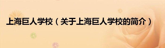 本文關(guān)于上海巨人學(xué)校的簡介就講解完畢,希望對(duì)大家有所幫助。
