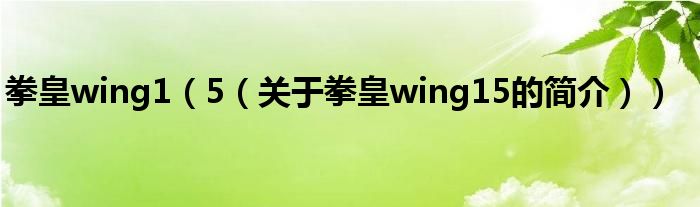 本文關于拳皇wing1 5的簡介就講解完畢,希望對大家有所幫助。