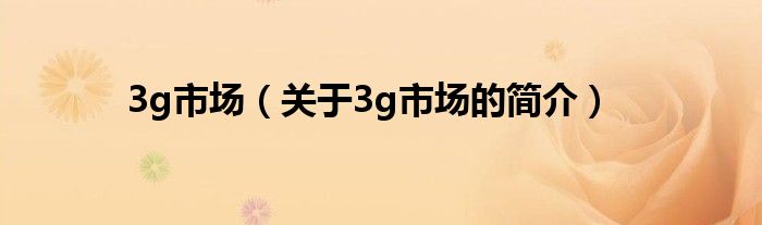 本文關于3g市場的簡介就講解完畢,希望對大家有所幫助。