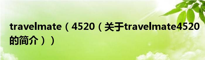 大家好,travelmate 4520,關于travelmate 4520的簡介很多人還不知道,現在讓我們一起來看看吧!
