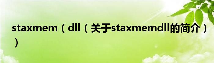 大家好,staxmem dll,關(guān)于staxmem dll的簡(jiǎn)介很多人還不知道,現(xiàn)在讓我們一起來(lái)看看吧!