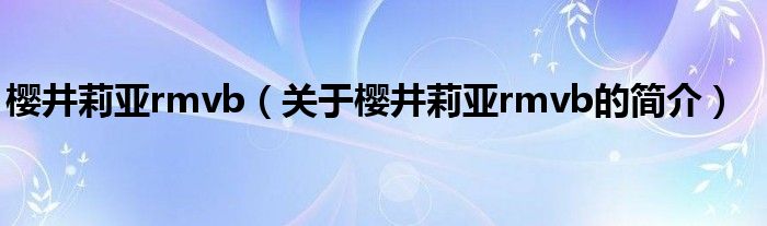 本文關于櫻井莉亞rmvb的簡介就講解完畢,希望對大家有所幫助。
