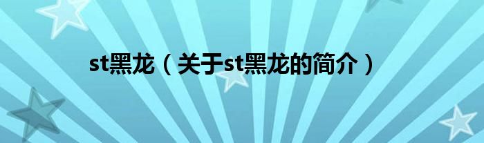 本文關(guān)于st黑龍的簡(jiǎn)介就講解完畢,希望對(duì)大家有所幫助。