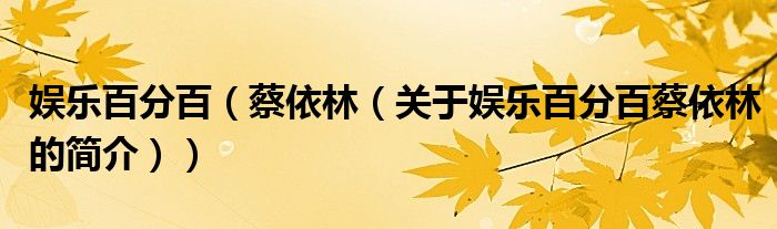 大家好,娛樂百分百 蔡依林,關(guān)于娛樂百分百 蔡依林的簡介很多人還不知道,現(xiàn)在讓我們一起來看看吧!