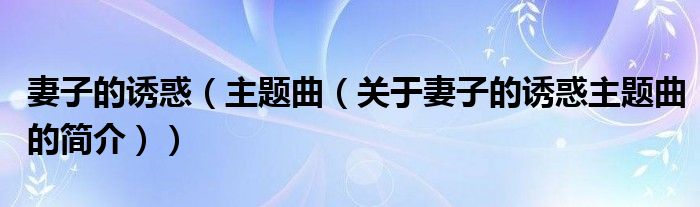 本文關(guān)于妻子的誘惑 主題曲的簡介就講解完畢,希望對大家有所幫助。