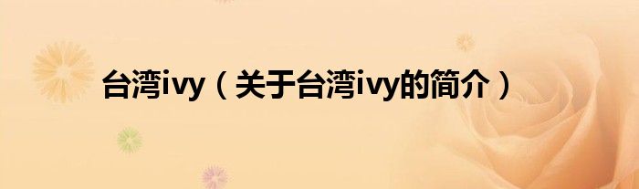 本文關于臺灣ivy的簡介就講解完畢,希望對大家有所幫助。
