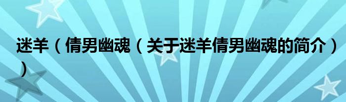 本文關(guān)于迷羊 倩男幽魂的簡介就講解完畢,希望對大家有所幫助。