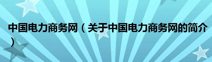 本文關于中國電力商務網的簡介就講解完畢,希望對大家有所幫助。
