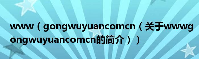 本文關(guān)于www gongwuyuan com cn的簡(jiǎn)介就講解完畢,希望對(duì)大家有所幫助。