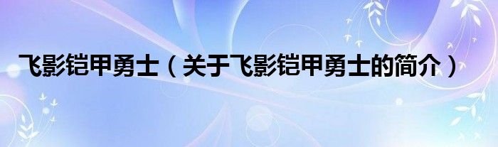 本文關于飛影鎧甲勇士的簡介就講解完畢,希望對大家有所幫助。