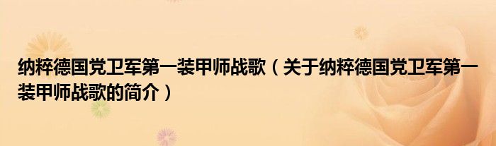 本文關于納粹德國黨衛軍第一裝甲師戰歌的簡介就講解完畢,希望對大家有所幫助。