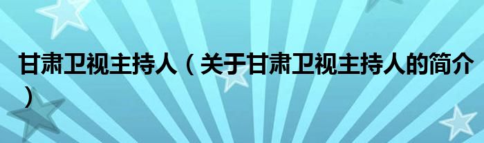 本文關(guān)于甘肅衛(wèi)視主持人的簡介就講解完畢,希望對大家有所幫助。