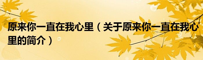 大家好,原來你一直在我心里,關于原來你一直在我心里的簡介很多人還不知道,現在讓我們一起來看看吧!