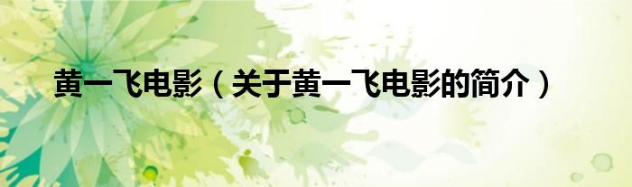 大家好,黃一飛電影,關(guān)于黃一飛電影的簡介很多人還不知道,現(xiàn)在讓我們一起來看看吧!