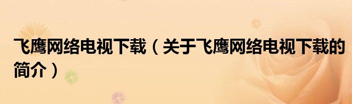 本文關于飛鷹網絡電視下載的簡介就講解完畢,希望對大家有所幫助。